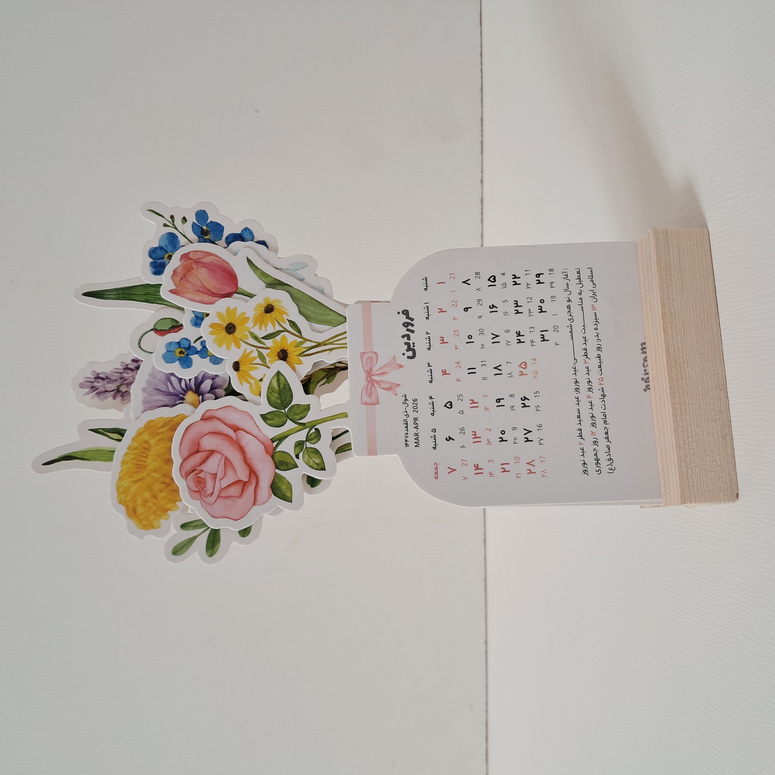 تقویم پایه دار گل،رومیزی،چوبی راش،تقویم سال نو ۱۴۰۵۱1
