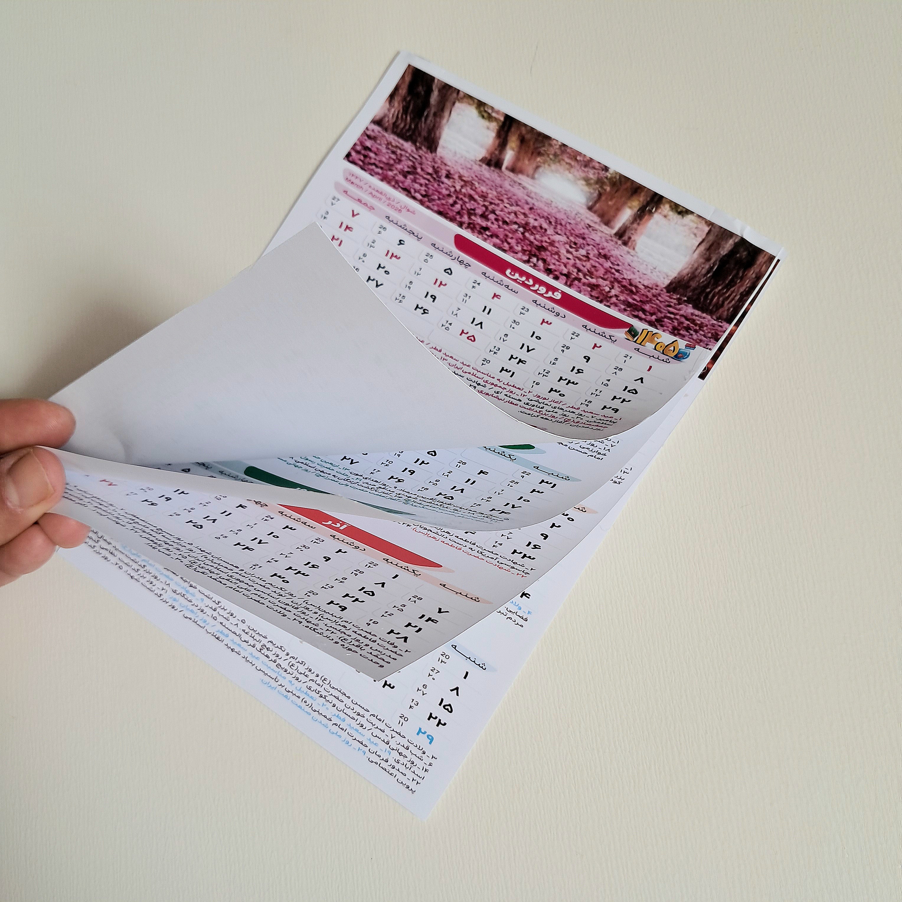 تقویم دیواری جدید 1405 سایز A⁴ تک برگ گلاسه