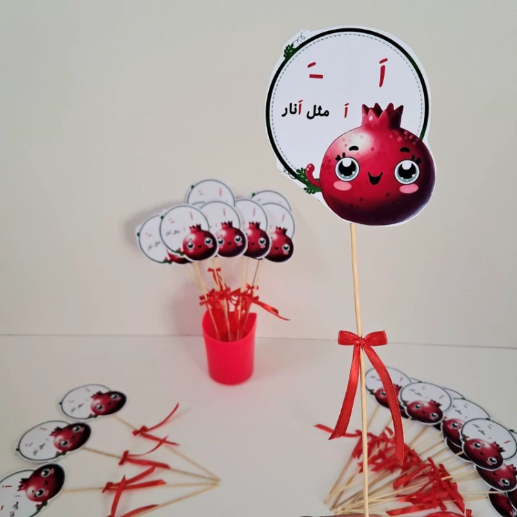 تاپرِ نشانه ی (اَ ) طرح انار ✅️قابل سفارش برای تمام حروف الفبا ✅️جنس کار مقوای گلاسه ✅️چاپ رنگی با کیفیت 📌 قیمت هر عدد 12 ت ❌️حداقل تعداد قابل سفارش 10 عدد❌️ ❌️ثبت سفارش حتما از 3 روز قبل ❌️