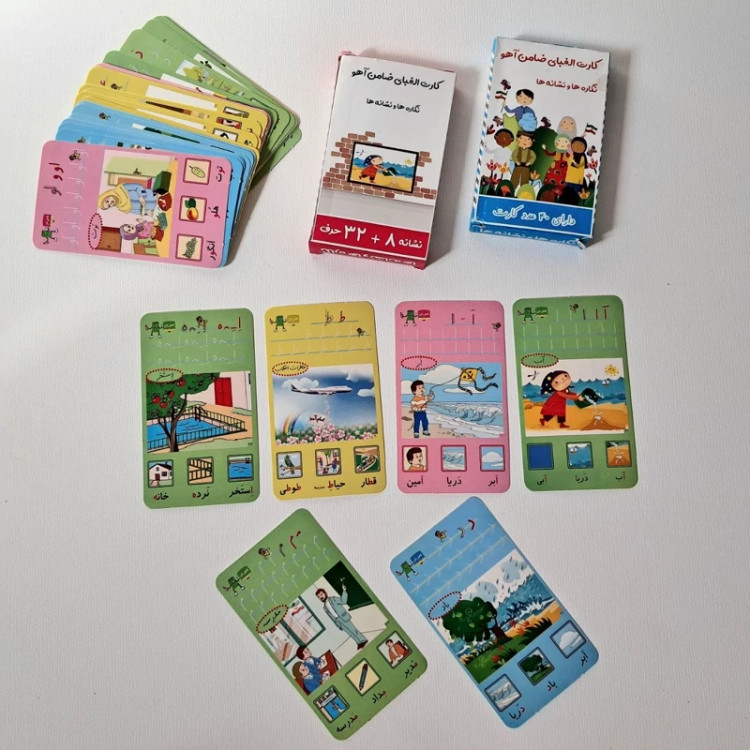 کارت الفبا ✅️پک 40 عددی ✅️32 حرف + 8 نشانه ✅️سایز حدودی هرکارت( 7×12) 📌قیمت 38 ت