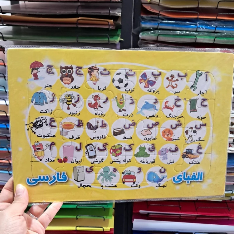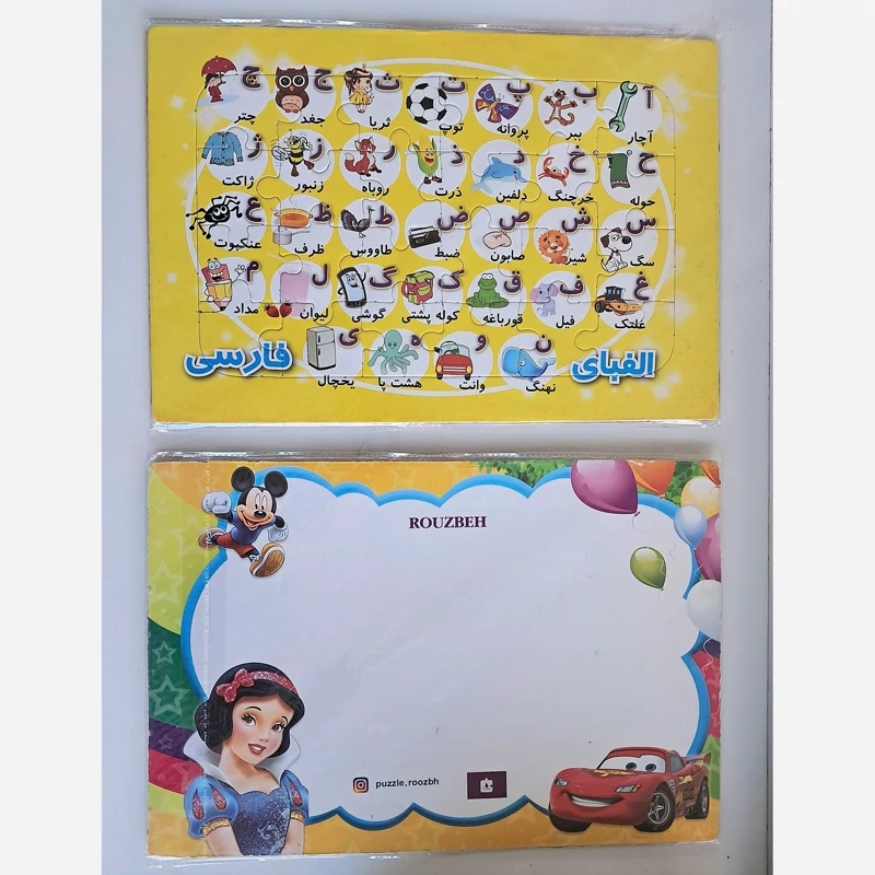 پازل الفبا دوطرفه پشت وایتبردی سایز پازل A⁴ 35 تکه