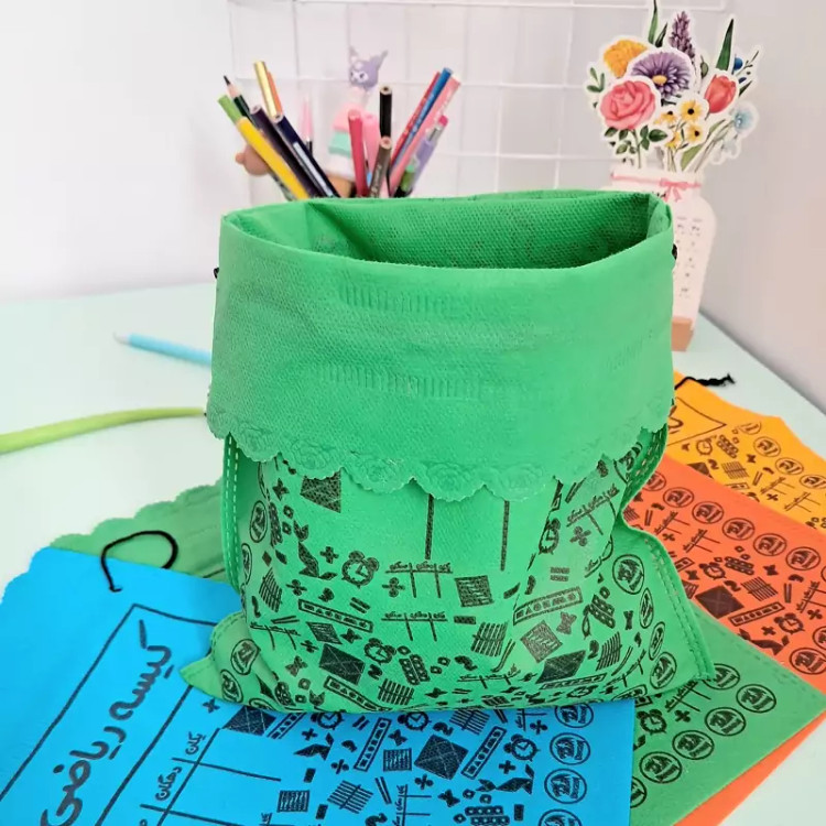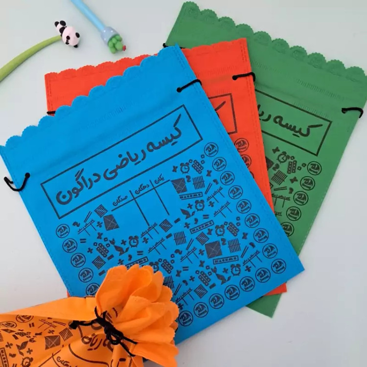 ❌️لطفا حتما قبل از ثبت سفارش موجودی بگیرید ❌️ کیسه ریاضی پارچه ای ✅️رنگبندی 💙🧡💛💚 ✅️سایز حدودی( 27×22) سانتی متر ✅️سر جمع شونده ✅️قیمت 15 ت