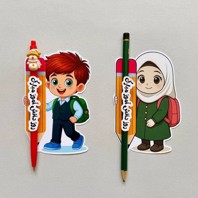 گیفت روز دانش آموز ✅️دخترانه 👧 و پسرانه 🧑 ✅️چاپ شده با مقوای گلاسه ✅️سایز حدودی (8×12) cm ❌️گیفت ها بدون مداد ارسال میشود ❌️ 📌قیمت 12 ت